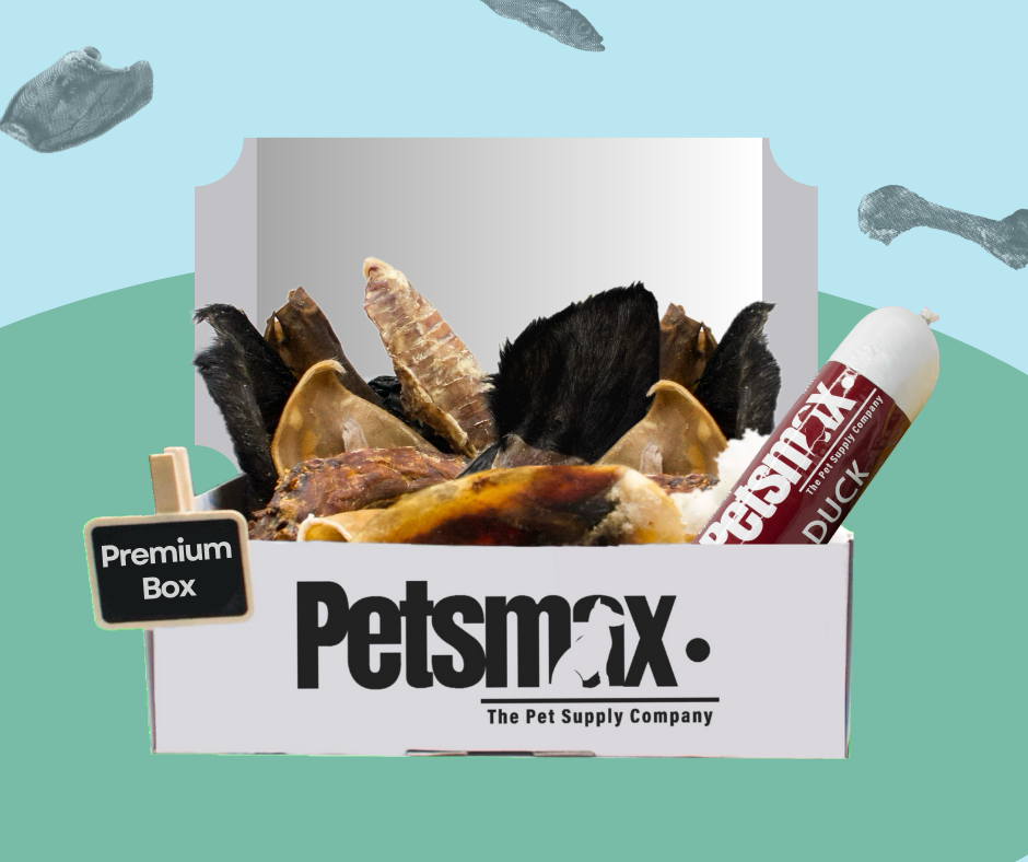 In the PremiumTreat Box - You receive items like our premium head meat, Pork Rind, Paddywack, Chicken wings, Rabbit feet or ears, Duck neck chicken neck, Training treats, Cows ears, trachea, Chicken feet, Moon bone, Liver.